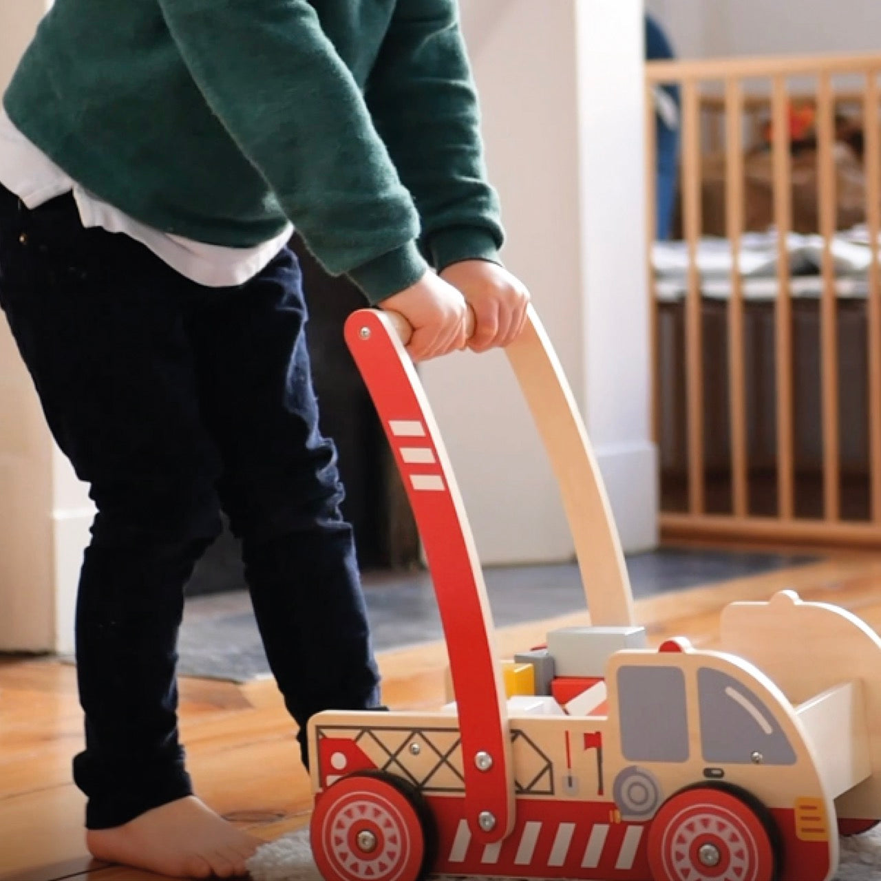 Chariot de marche pompier en bois Chariot de marche Pompier en bois