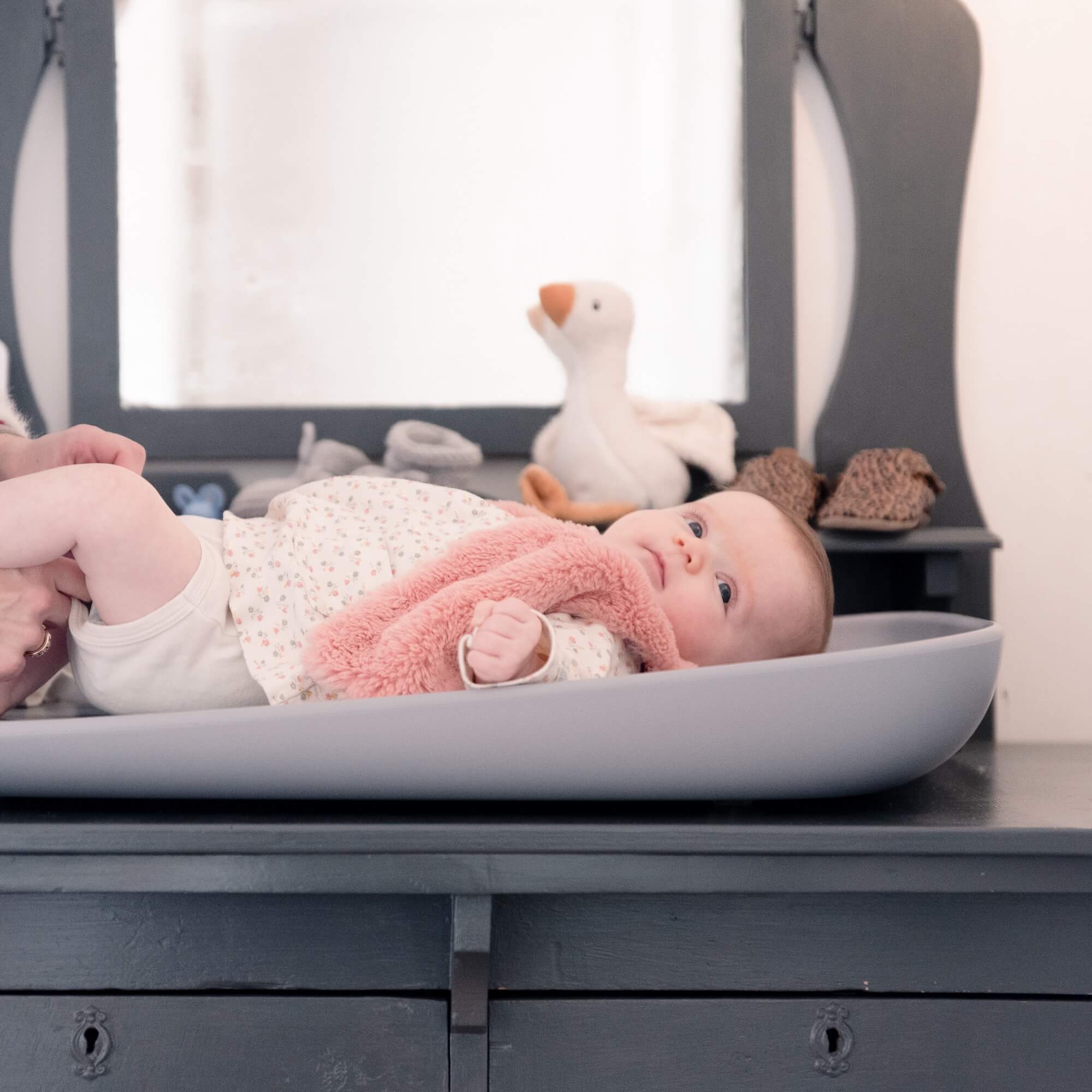 Plus besoin de batailler avec votre bébé agité ! Les bords élargis et les pieds anti-dérapants vous assurent un excellent maintien pendant le change, quelle que soit la base utilisée pour poser votre plan.