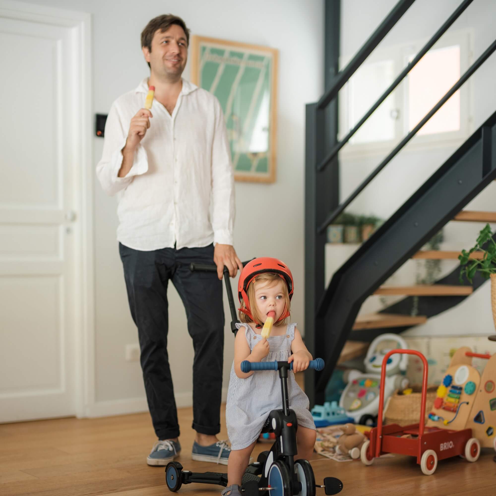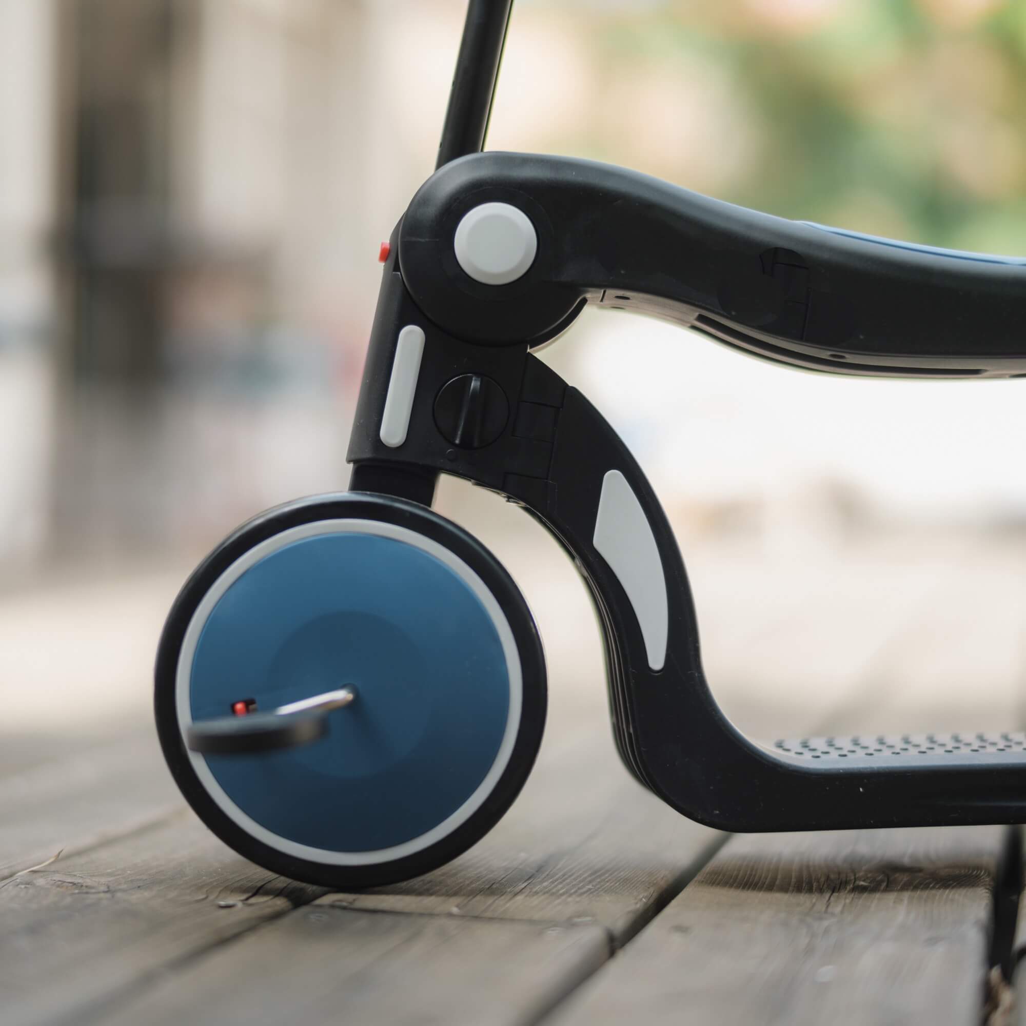 Parce que chez Looping on pense à tout, chaque fonctionnalité est imaginée avant tout avec un souci de praticité. Une simple poussée sur les boutons blancs vous permet de passer de draisienne à trottinette, de choisir entre la position 3 roues et 2 roues, ou encore d'écarter les pieds pour la fonction tricycle, le tout sans avoir besoin d'outil ! Si vous quittez la position tricycle, un emplacement dédié vous permet de ranger les pédales et d'éviter qu'elles se perdent.